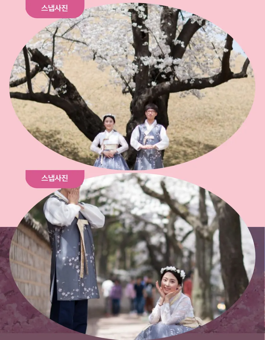 한복과 스냅사진으로 색다른 추억을 더욱 깊게 남길 거예요!