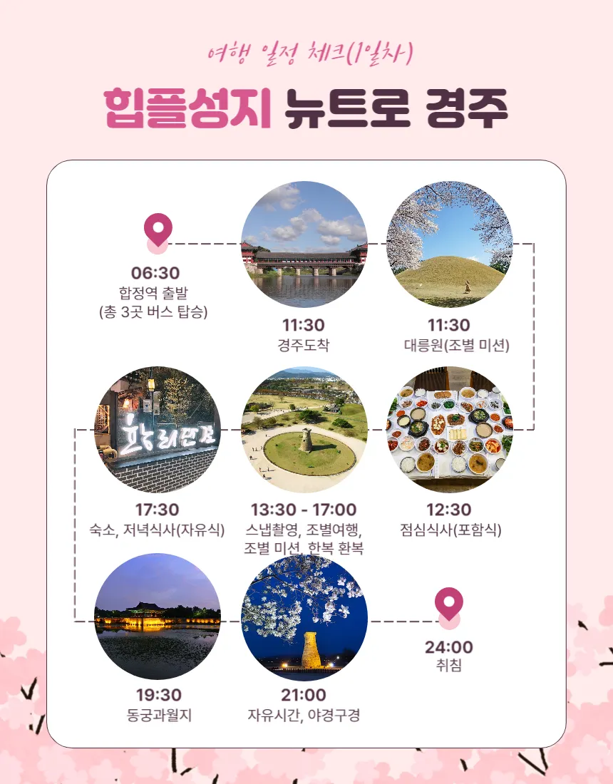 (대릉원 돌담길, 동궁과월지, 불국사: 현지 상황에 따라 장소는 변경될 수 있습니다.)