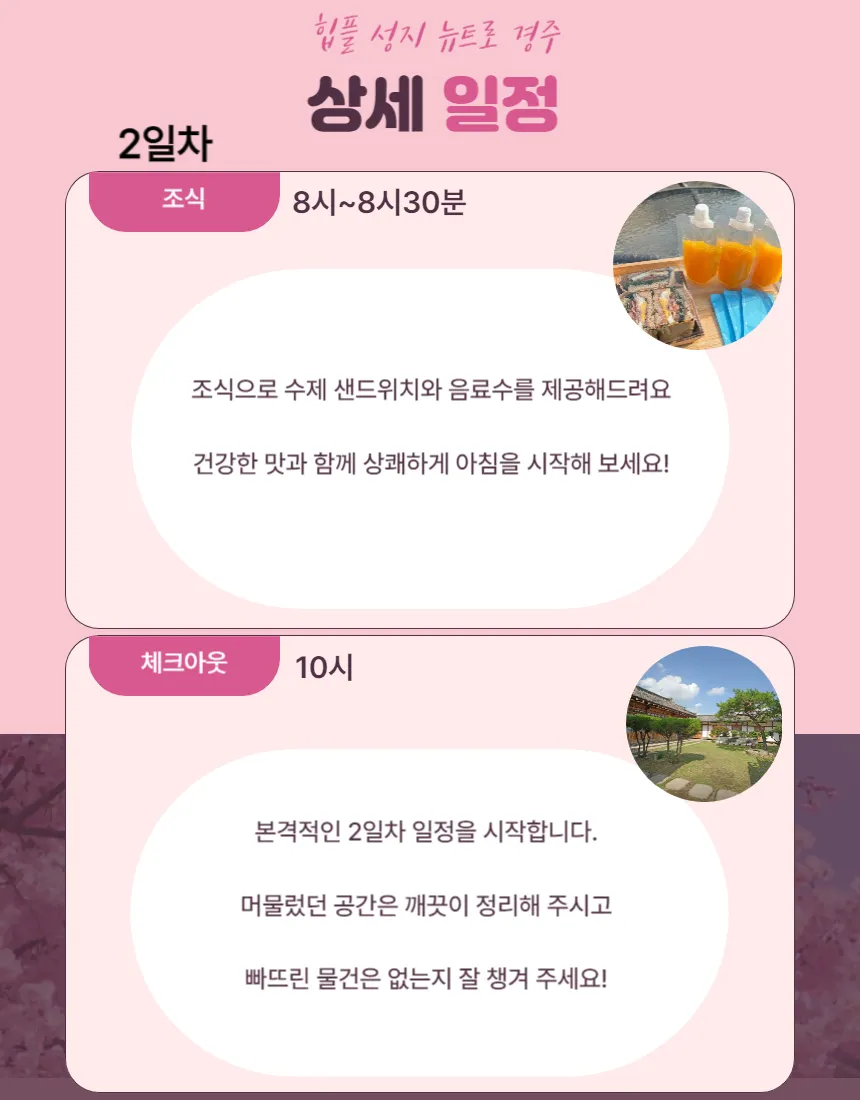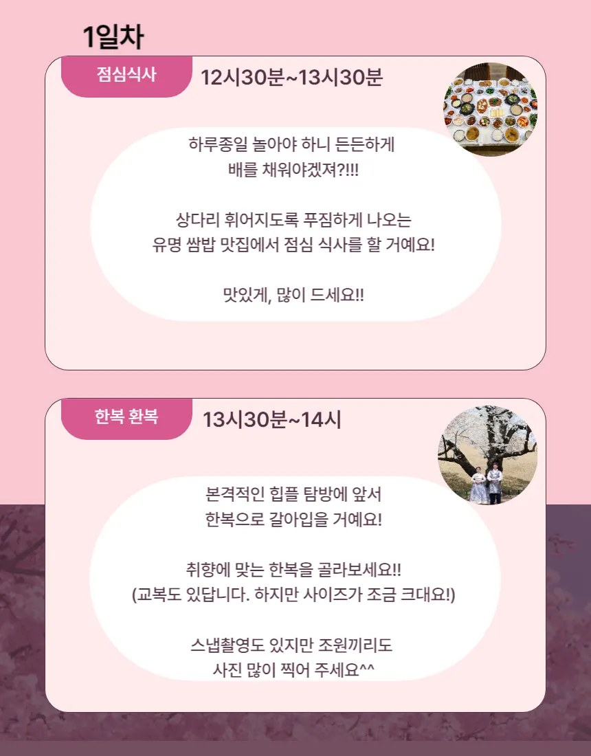 걱정 마세요 일정이 상세하지만 빡빡하지 않으니 마음 놓고 신청하세요!