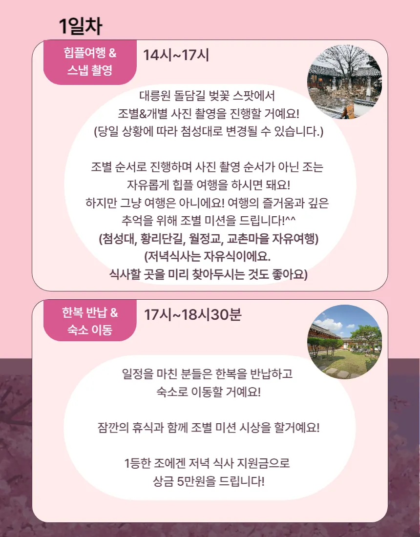 경주 감성여행이 하고 싶은/벚꽃 구경이 하고 싶은/ 힙플레이스 여행이 하고 싶은/ 색다른 추억을 스냅사진으로 남기고 싶은/ 새로운 사람과 어울리고 싶은 20,30대는 누구나!!