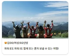 연인 또는 친구와 함께 오셔서 조 배정이 없는 여행을 원하시는 분들은 따로또 같이를 이용하시면 됩니다. 물론 혼자 오시는 분도 따로또 같이 신청 가능합니다!