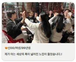 1박2일 짧은 시간 동안 친해질 것 같냐고요? 걱정 마세요! 친해질 수 있는 프로그램도 준비 되어 있고, 그래서인지 여행이 마치면 자연스럽게 정모도 진행하더랍니다!