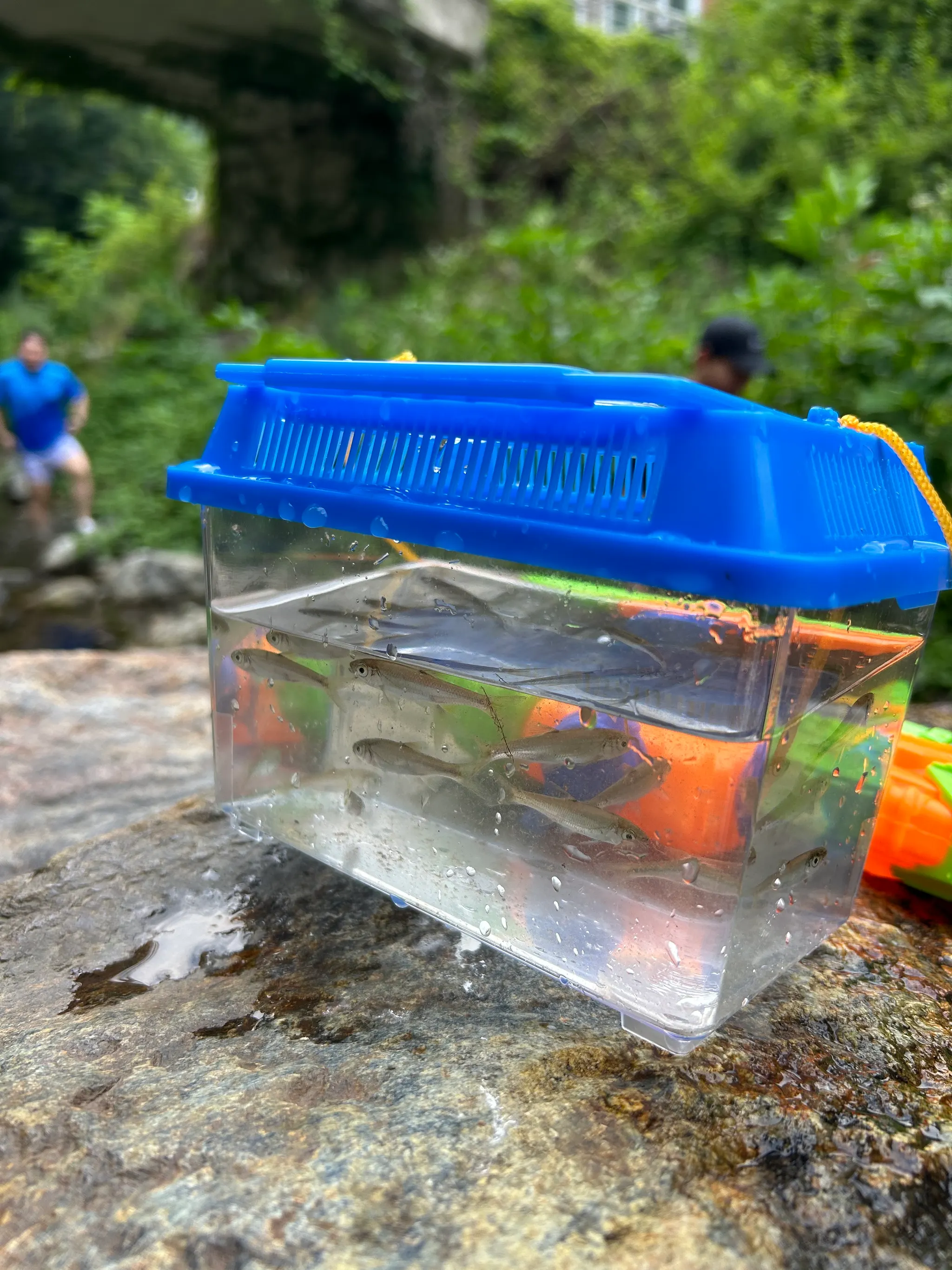 낮에는 숙소 뒤의 계곡에서 물고기 잡기 놀이도 할 거고요