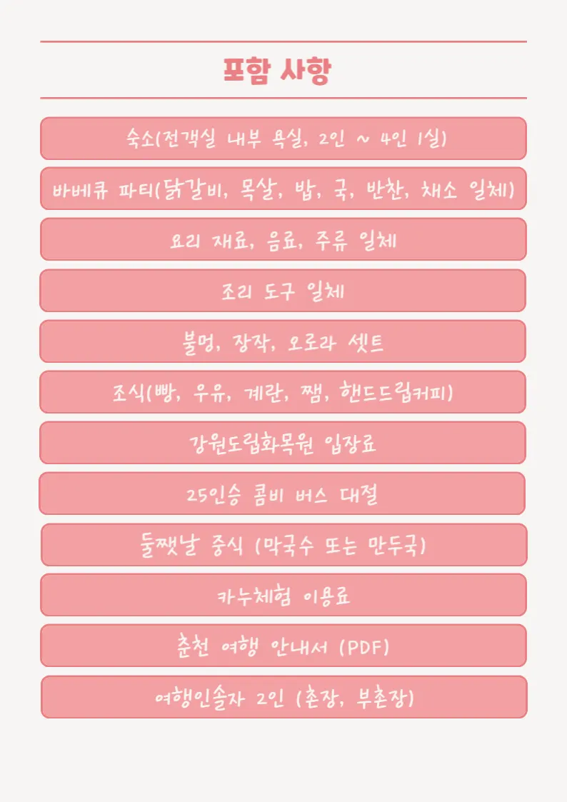 춘천에서 숙소까지 오는 상세한 방법과 버스 시간표는 여행이 최종 확정되면 오픈채팅방에서 PDF로 안내드려요!