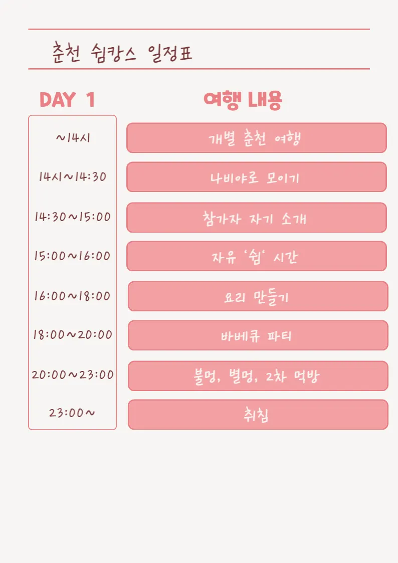 그럼 이제 우리의 1박2일 동안의 일정을 살펴볼까요?