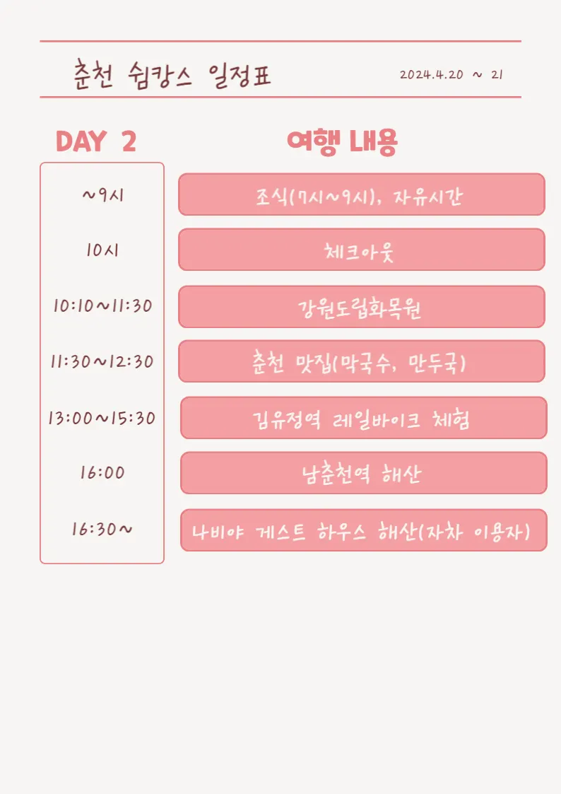๋จ์ถ์ฒ์ญ์ ๋จผ์ ๋ค๋ฆฌ๊ณ ์์ฐจ๋ฅผ ์์์ ๋๊ณ ์ค์ ๋ถ๋ค์ ์ํด ๋ค์ ๋๋น์ผ ๊ฒ์คํธ ํ์ฐ์ค๋ก ๋์์ฌ ๊ฑฐ์์!