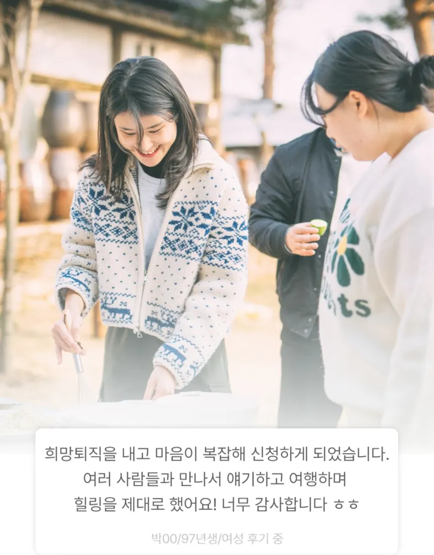 2) ๋ค์ํ ํ๋ง ํ๋์ ํตํด ๋ชธ๊ณผ ๋ง์์ ํ์์ ์ป์ด๊ฐ๋ ์ฌํ์ด์์!
