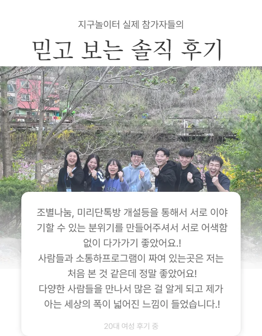 ์ ์ฌ๋๋ค์ ์ดํด๊ด๊ณ ์์ด ๋ง๋๋๊ฒ ์ฝ์ง ์์ฃ ?! ์ง๊ตฌ๋์ดํฐ ์ฌํ์ ํตํด ๊ฒฝํ๊ณผ ๊ด๊ณ ๋๋ง๋ฆฌ ํ ๋ผ ๋ชจ๋ ์ก์ ๊ฐ์ธ์!^^