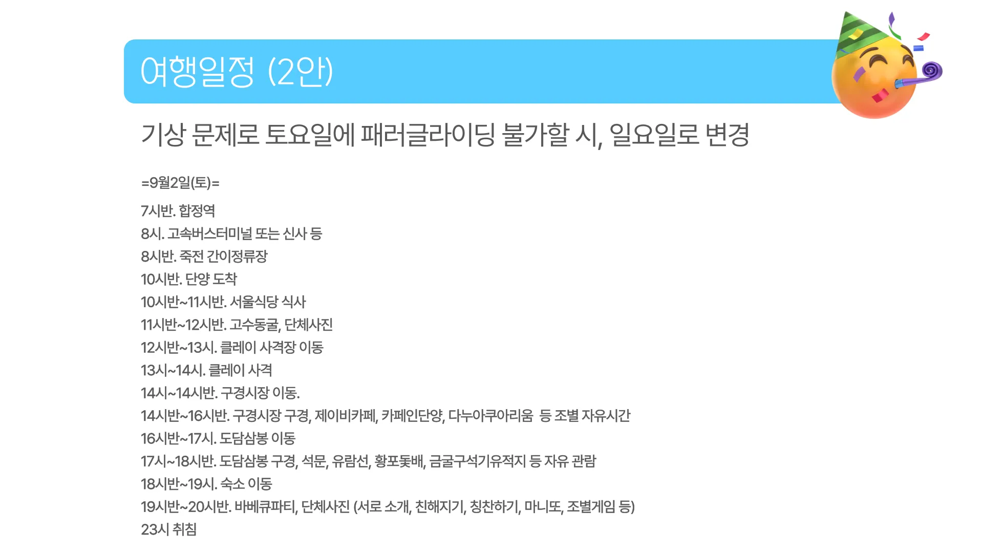 1. 여행 이틀 전 단톡방에서 만나요!