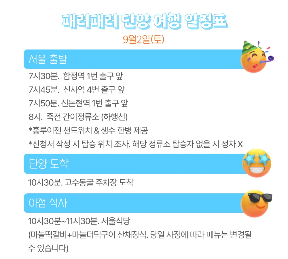 *버스 차량 번호 및 탑승 상세 위치는 단톡방 개설 후 별도로 안내 드립니다.