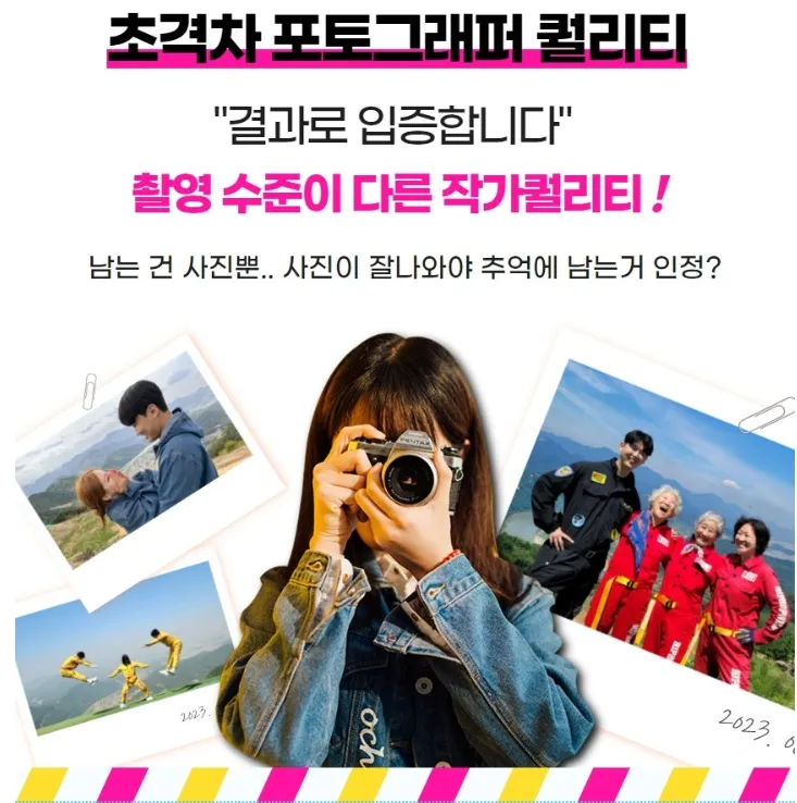 강사님들이 최고의 인생 사진을 촬영해 주시고, 인당 1장 씩 무료 인화도 해 드립니다!