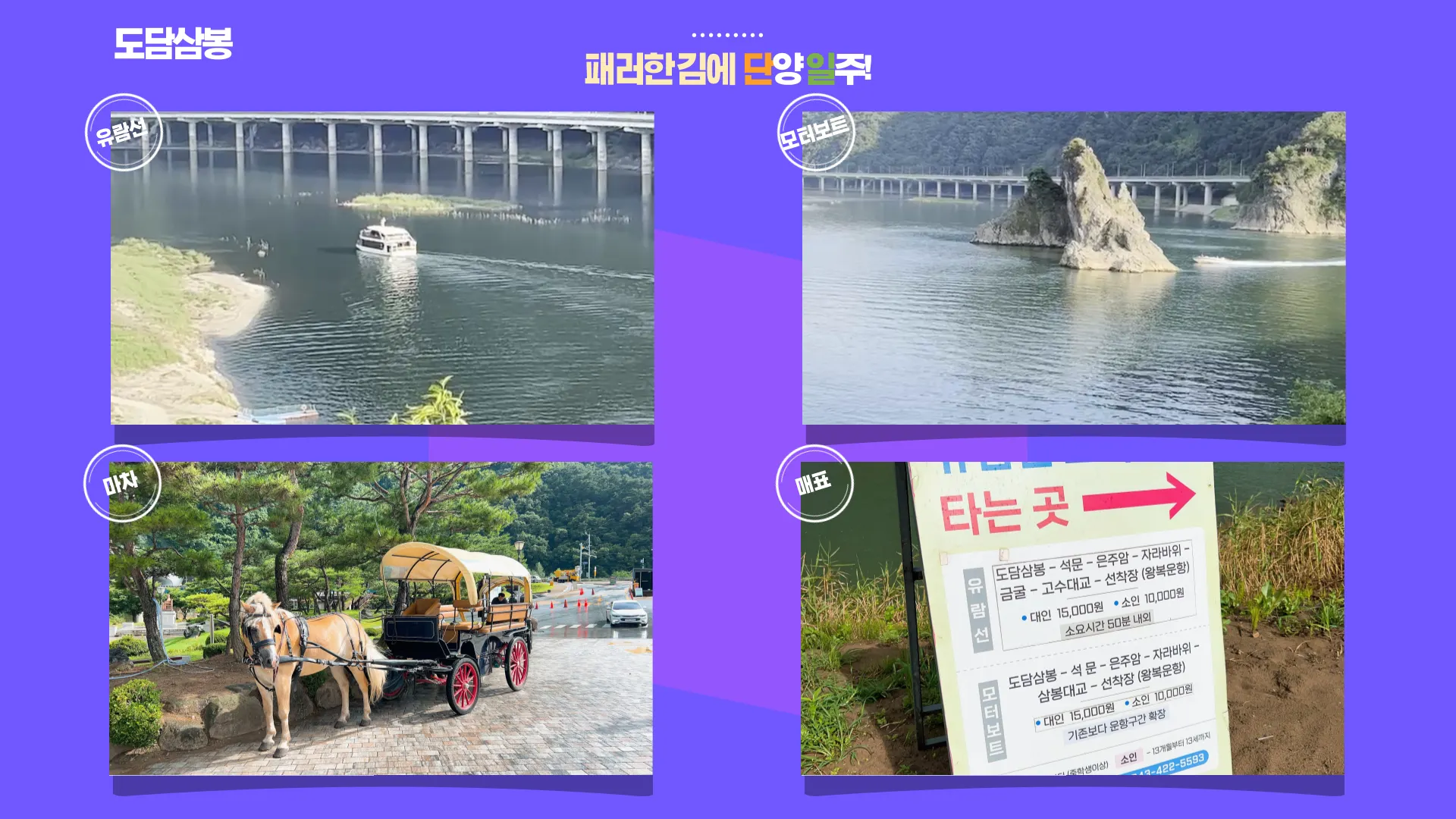 : 도담삼봉에는 황포돛배, 유람선, 관광마차도 있어요 (개별 선택입니다)