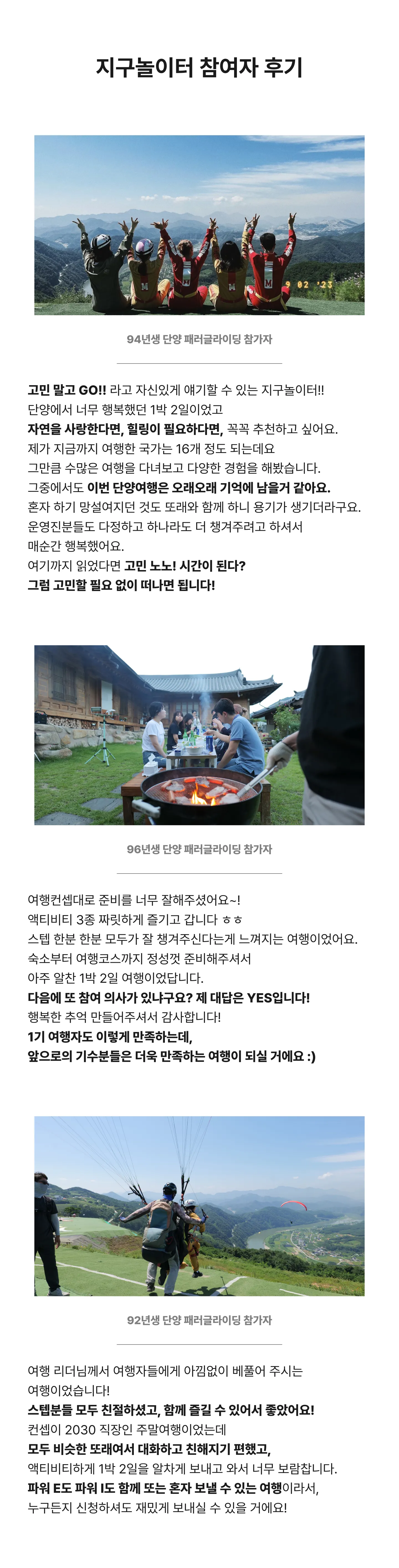 지구놀이터의 모든 여행은 이성 만남 목적의 여행이 아닙니다. 이성 만남 목적으로 오시는 분들은 지양합니다.
