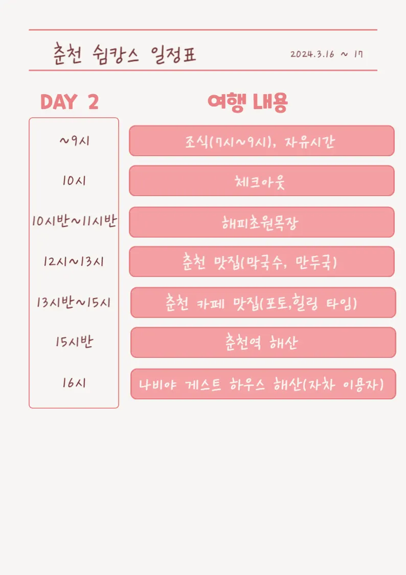 춘천에서 숙소까지 오는 상세한 방법과 버스 시간표는 여행이 최종 확정되면 오픈채팅방에서 PDF로 안내드려요!