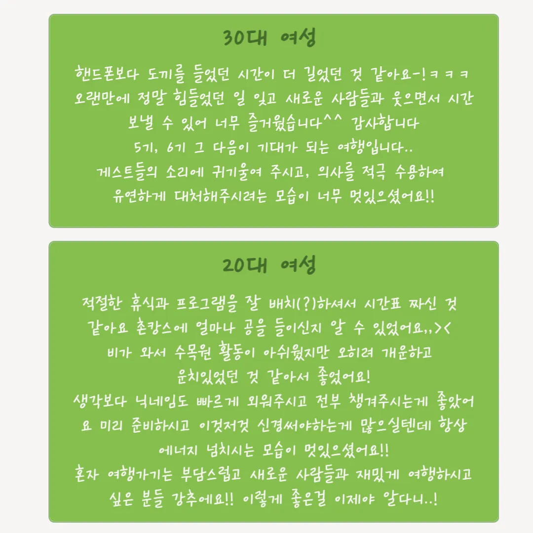 ๋คํํ๋ ํ์ฌ๊น์ง๋ ์ด๋ฐ ๋ถ๋ค์ด ์์์ต๋๋ค. ์๋ก ๋ฐฐ๋ คํ๊ณ ์ด์ธ๋ฆฌ๋ฉฐ ๋ชจ๋ ์ฆ๊ฑฐ์ด ์ฌํ์ด ๋์๊ธธ ๋ฐ๋๋๋ค