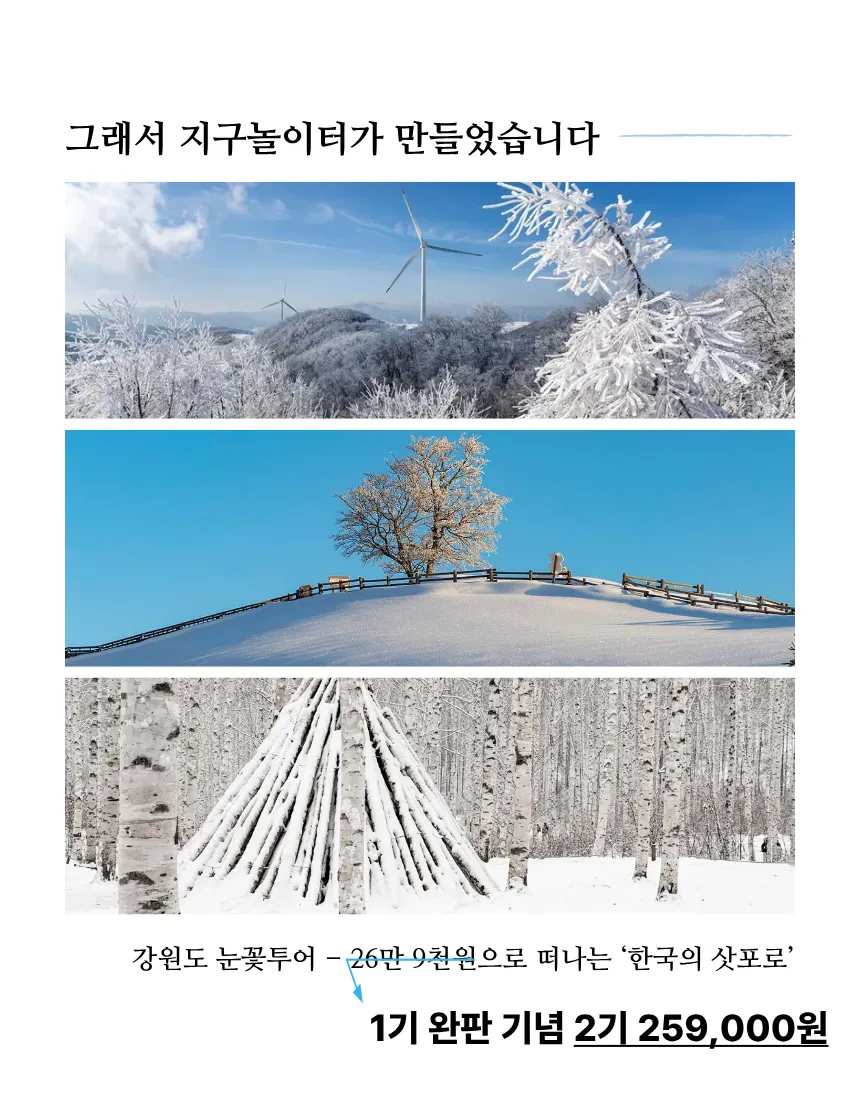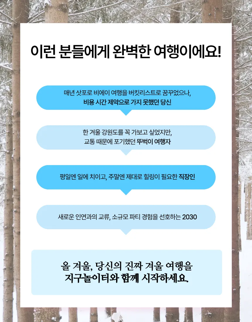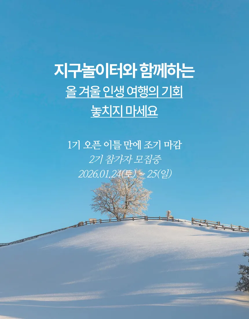 이번 겨울, 지구놀이터에서 당신의 첫 번째 눈꽃 여행을 시작해보세요 !