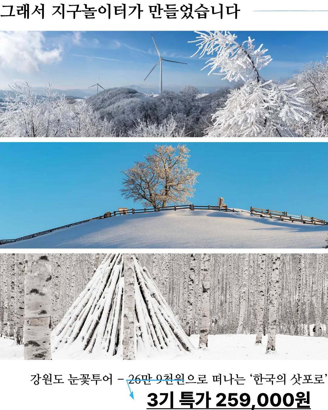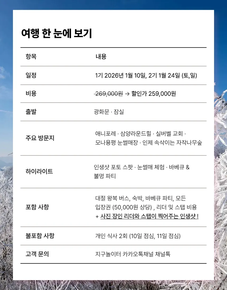 이번 겨울, 지구놀이터에서 당신의 첫 번째 눈꽃 여행을 시작해보세요 !