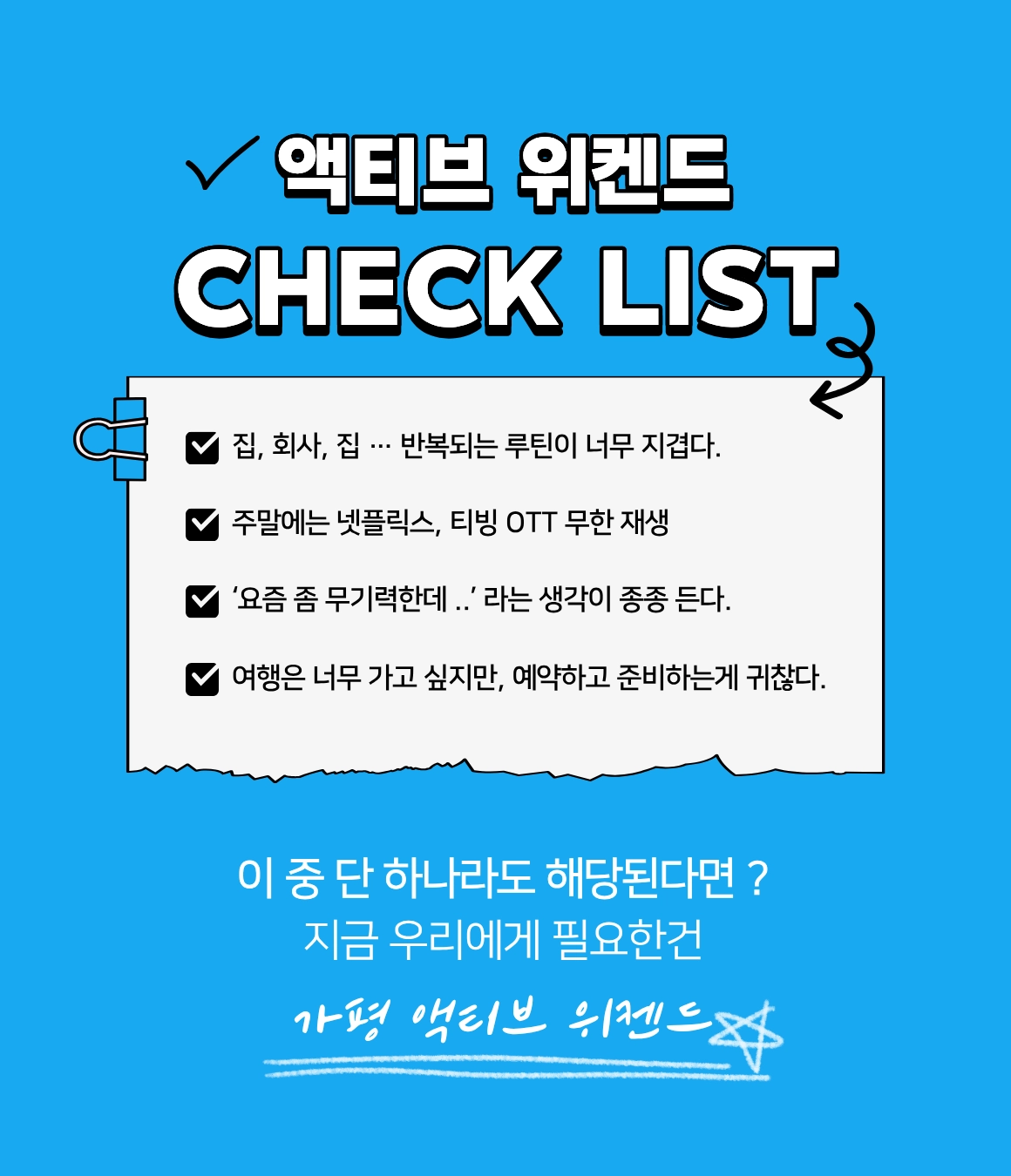 ์ด์์ง์ ์ฌ๋ฌ๋ถ์ด ์ฆ๊ฒ๊ณ ์์ ํ ์ฌํ์ด ๋์๋๋ก ๋๊น์ง ์ฑ๊ธฐ๊ณ ์ ๊ฒฝ ์จ ๋๋ฆด ๊ฒ์