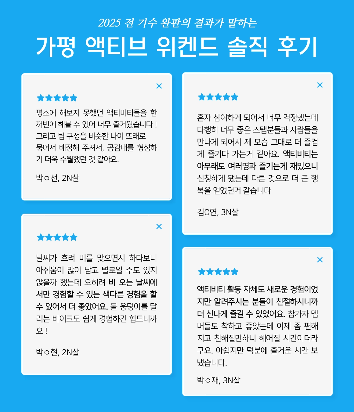๋คํํ๋ ํ์ฌ๊น์ง๋ ์ด๋ฐ ๋ถ๋ค์ด ์์์ต๋๋ค. ์๋ก ๋ฐฐ๋ คํ๊ณ ์ด์ธ๋ฆฌ๋ฉฐ ๋ชจ๋ ์ฆ๊ฑฐ์ด ์ฌํ์ด ๋์๊ธธ ๋ฐ๋๋๋ค